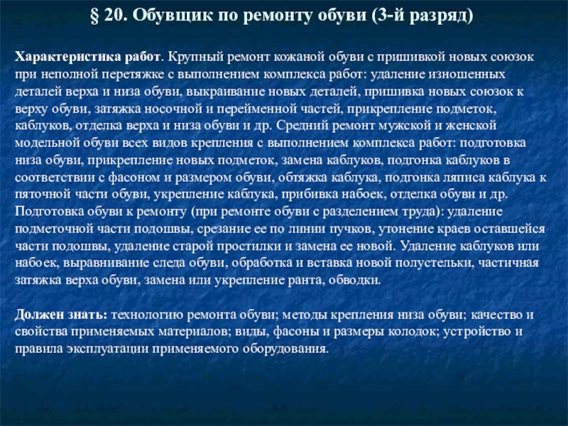 Слайд 6§ 20. Обувщик по ремонту обуви (3-й разряд)