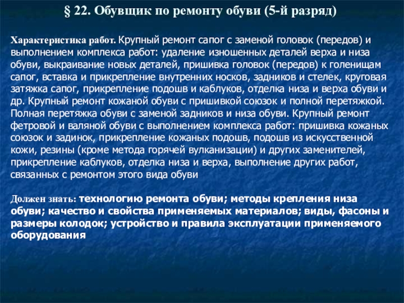 § 22. Обувщик по ремонту обуви (5-й разряд)