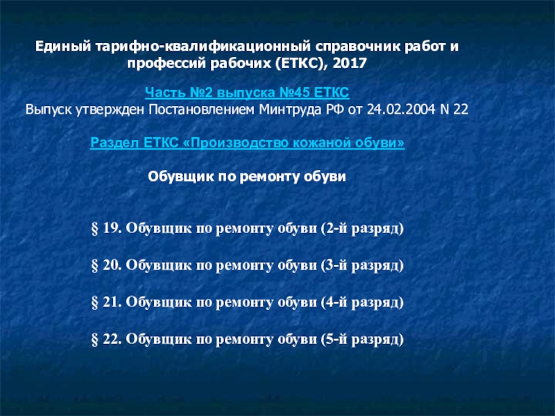 Слайд 8§ 22. Обувщик по ремонту обуви (5-й разряд)