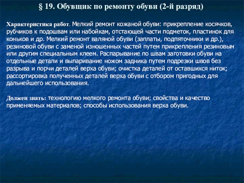 Слайд 5§ 19. Обувщик по ремонту обуви (2-й разряд)