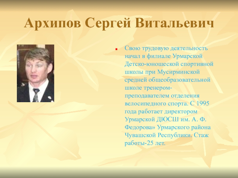 С сентября 2016 г. - и.о. заведующего кафедрой математического образования БОУ ДПО (ПК) С "Чувашский республиканский институт образования" Минобразования Чувашии.