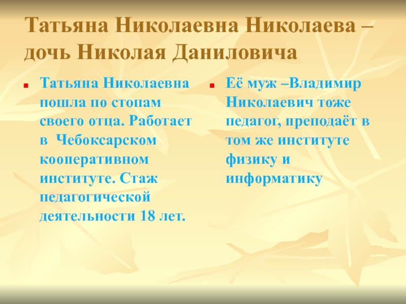 Её муж –Владимир Николаевич тоже педагог, преподаёт в том же институте физику и информатику