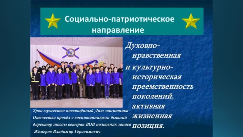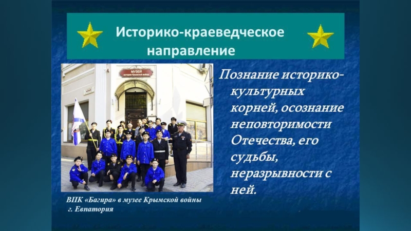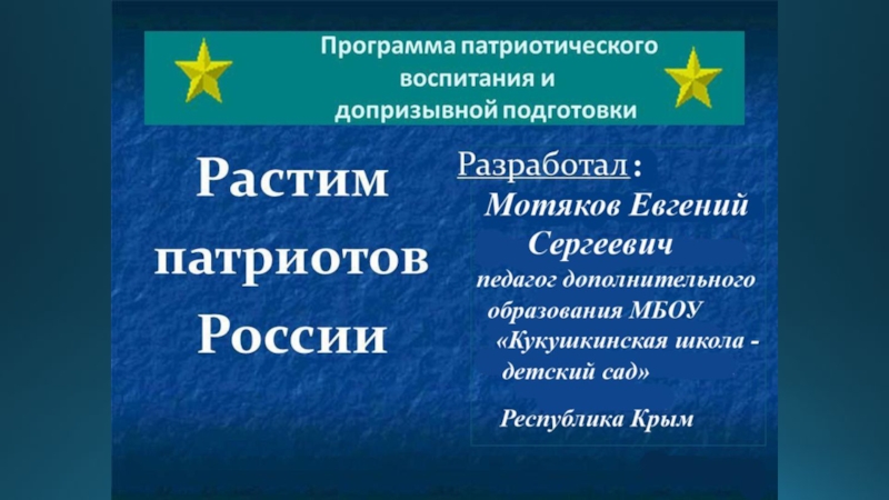 Презентация: Программа патриотического воспитания и допризывной подготовки военно-патриотического клуба юных морских пехотинцев Багира Образование