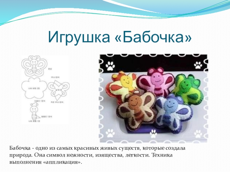 красивых живых существ, которые создала природа. Она символ нежности, изящества, легкости. Техника выполнения «аппликация».