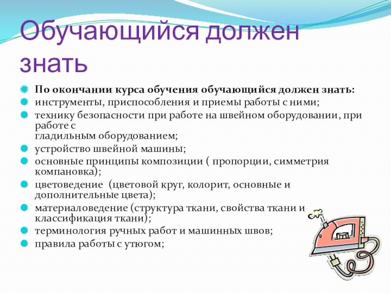эл.утюгом и пр. инструментами и приспособлениями, что способствует большей эффективности занятий.