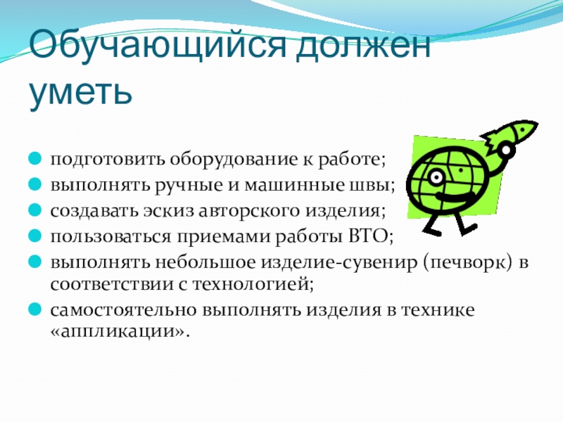 выполнять небольшое изделие-сувенир (печворк) в соответствии с технологией;