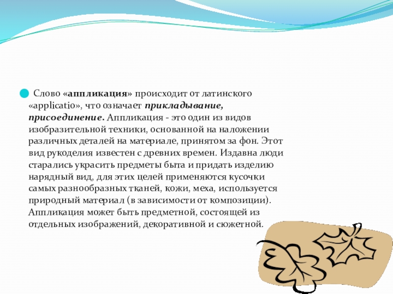 Слово «аппликация» происходит от латинского «applicatio», что означает прикладывание,