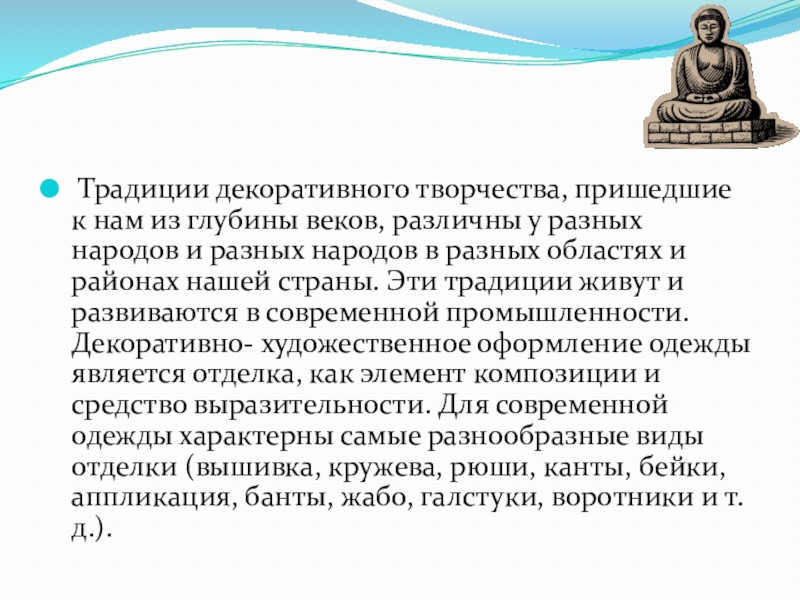 Слайд 5 Традиции декоративного творчества, пришедшие к нам из глубины веков, различны