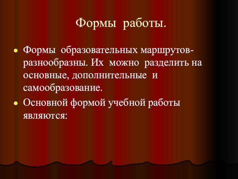 Формы образовательных маршрутов- разнообразны. Их можно разделить на основные, дополнительные
