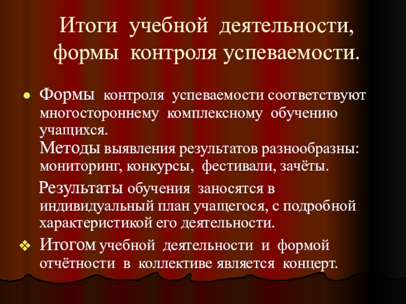 Слайд 20Итоги учебной деятельности, формы контроля успеваемости.