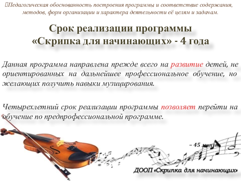 Четырехлетний срок реализации программы позволяет перейти на обучение по предпрофессиональной программе.