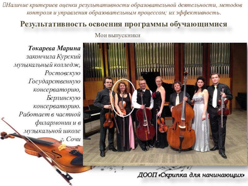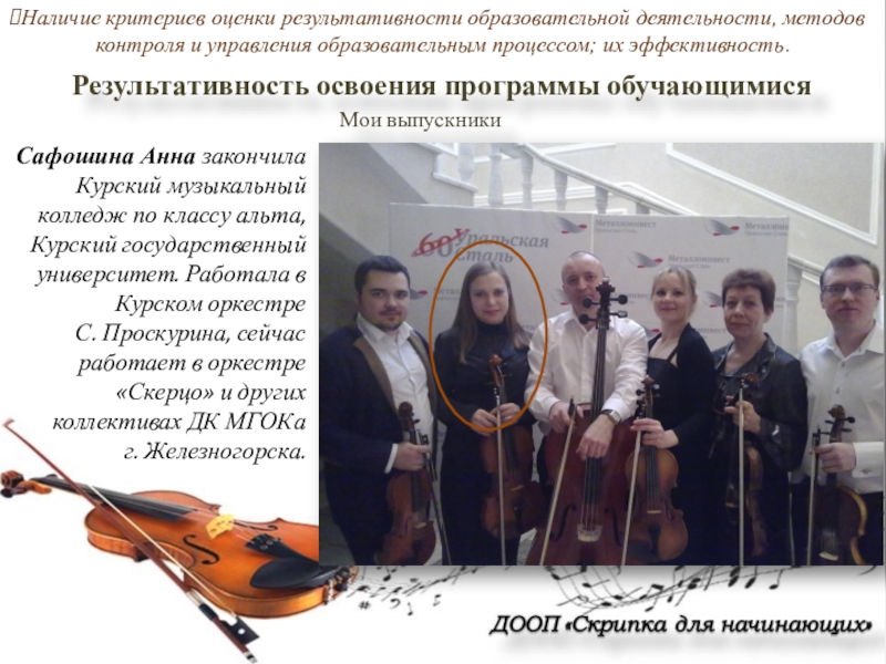 С. Проскурина, сейчас работает в оркестре «Скерцо» и других коллективах ДК МГОКа