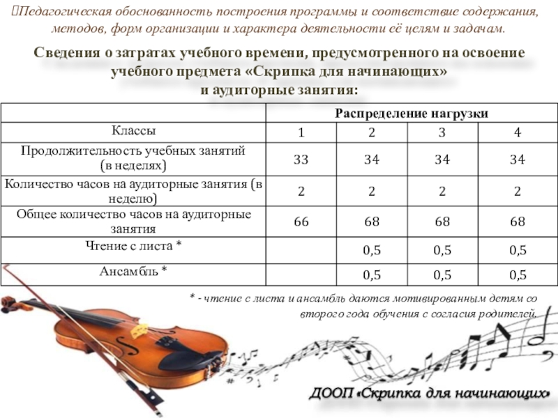 * - чтение с листа и ансамбль даются мотивированным детям со второго года обучения с согласия родителей.