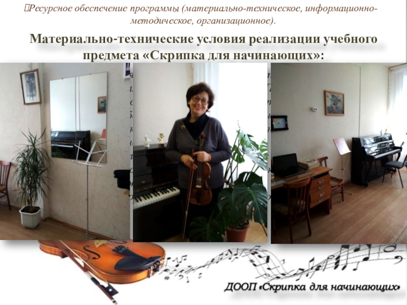 Материально-техническая база ОУ должна соответствовать санитарным и противопожарным нормам, нормам охраны труда. Помещение должно иметь хорошую звукоизоляцию, освещение и хорошо проветриваться. Должна быть обеспечена ежедневная уборка учебной аудитории. Учебные классы для занятий по специальности оснащаются фортепиано, в классе необходимо иметь пюпитр, зеркало, которые можно легко приспособить к любому росту ученика. Фортепиано должно быть хорошо настроено. Класс должен быть оборудован персональным компьютером с выходом в интернет и акустическими колонками. В библиотеке гимназии должен быть обеспечен доступ к множительной технике, должно быть достаточное количество нотной и методической литературы.