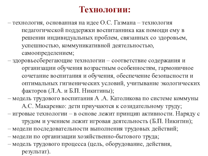 – технология, основанная на идее О.С. Газмана – технология педагогической поддержки