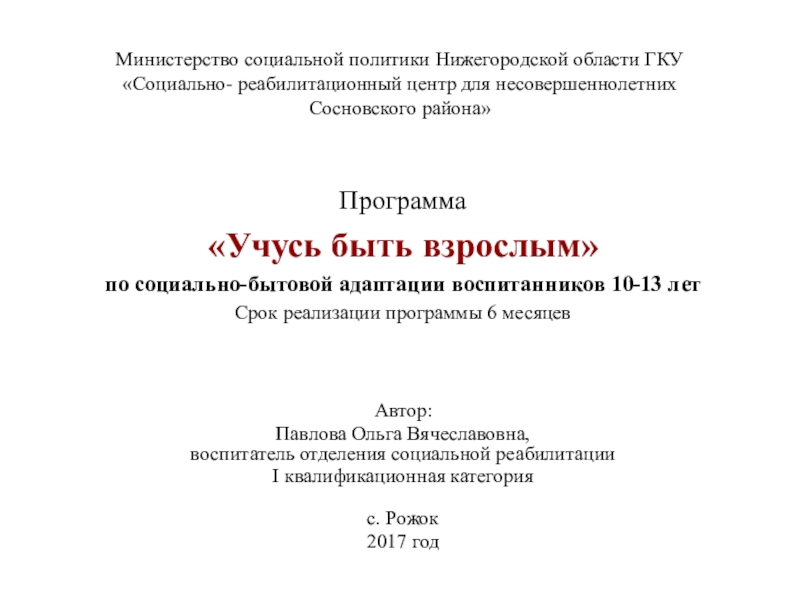 Слайд 1Министерство социальной политики Нижегородской области ГКУ «Социально- реабилитационный центр для несовершеннолетних