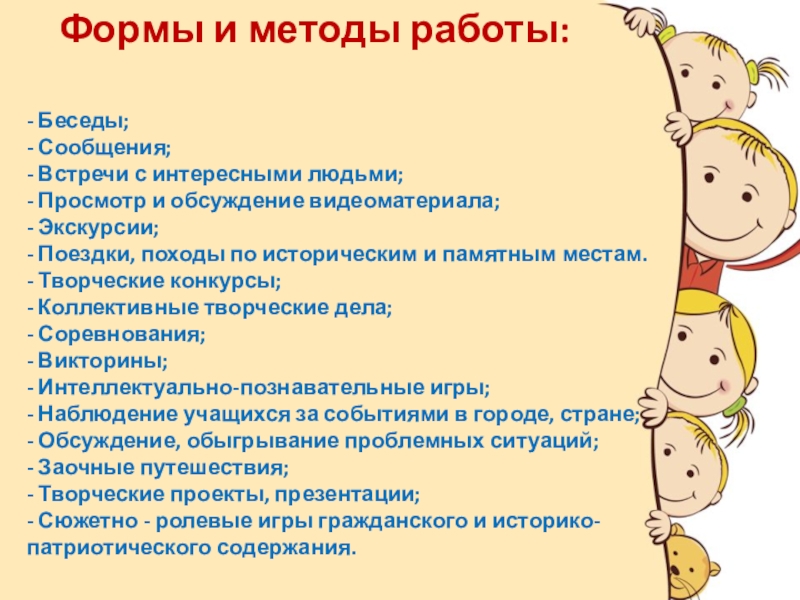 Формы и методы работы: