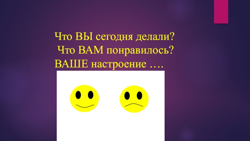 Что ВЫ сегодня делали? Что ВАМ понравилось? ВАШЕ настроение ….