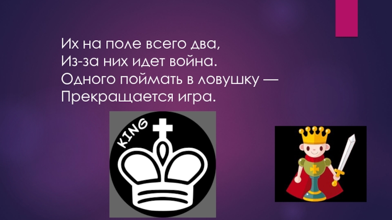 Их на поле всего два,Из-за них идет война.Одного поймать в ловушку —Прекращается игра.
