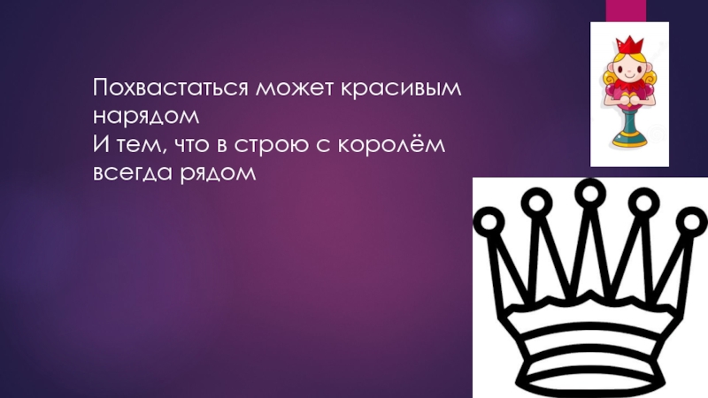 Похвастаться может красивым нарядомИ тем, что в строю с королём всегда рядом