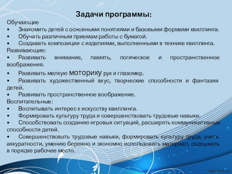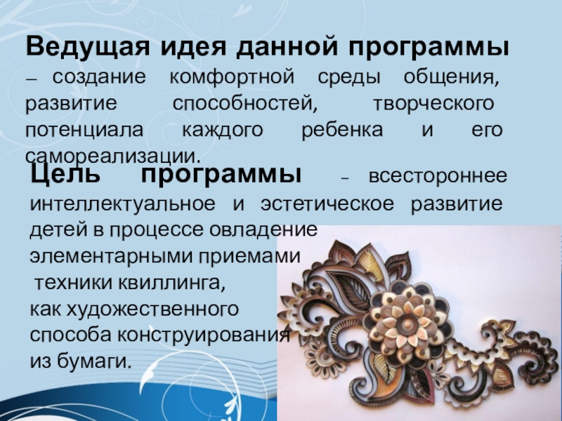 Цель программы – всестороннее интеллектуальное и эстетическое развитие детей в процессе овладение