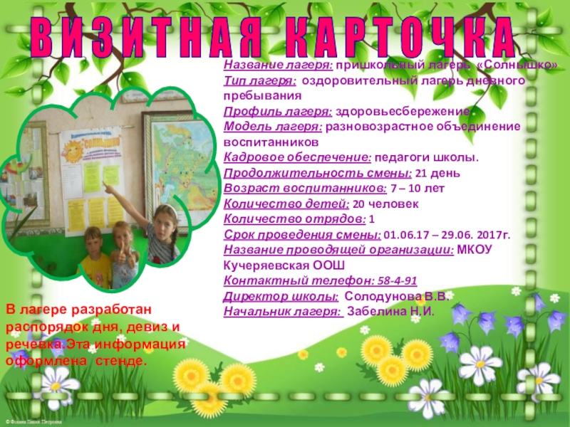 Название лагеря: пришкольный лагерь «Солнышко»