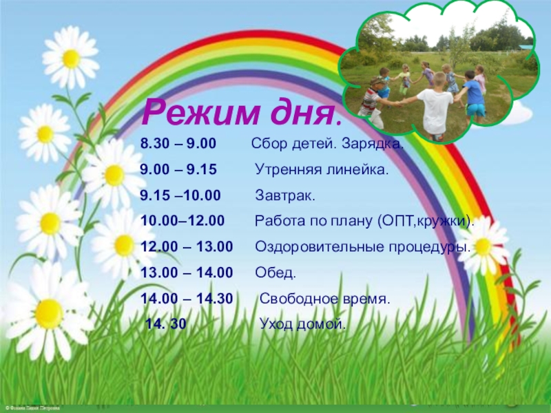 В лагере разработан распорядок дня, девиз и речевка.Эта информация оформлена стенде.