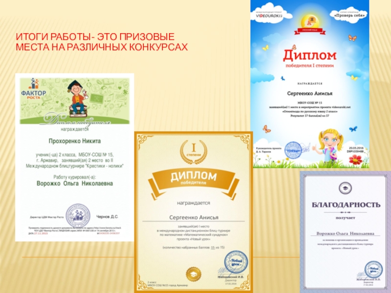 + в групповых проектах школьники овладевают умением сотрудничать, слышать друг друга, оказывать взаимопомощь.