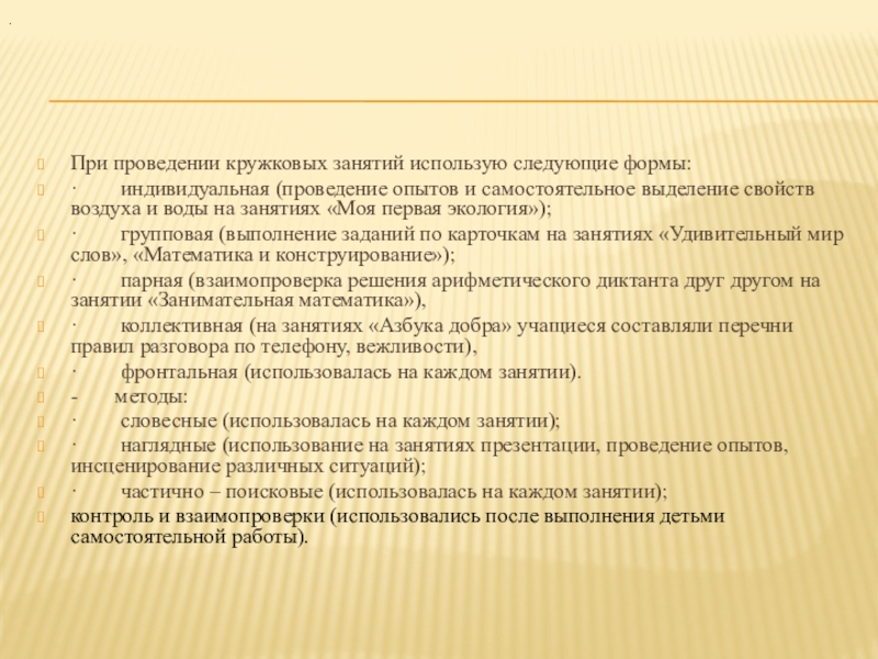 + ребята используют различные формы работы: дискуссии, изучение литературы, сбор информации и т.п.;