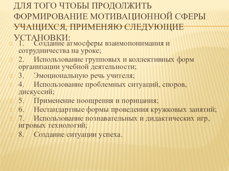 + в процессе этой деятельности происходит мотивирование, появляется удовлетворение от деятельности, от её результата;