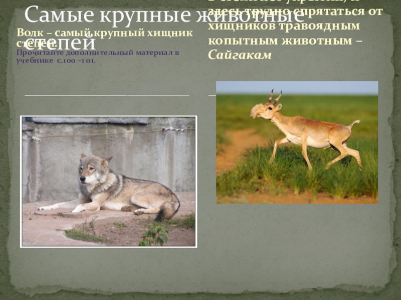 В степи нет укрытий, и здесь трудно спрятаться от хищников травоядным копытным животным – Сайгакам