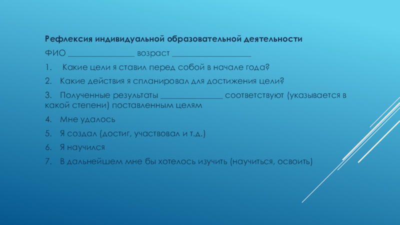 Слайд 23Рефлексия индивидуальной образовательной деятельности
