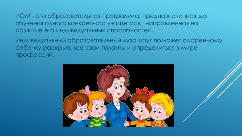 Слайд 4ИОМ - это образовательная программа, предназначенная для обучения одного конкретного учащегося,