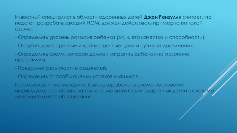 Слайд 12Известный специалист в области одаренных детей Джон Рензулли считает, что педагог,