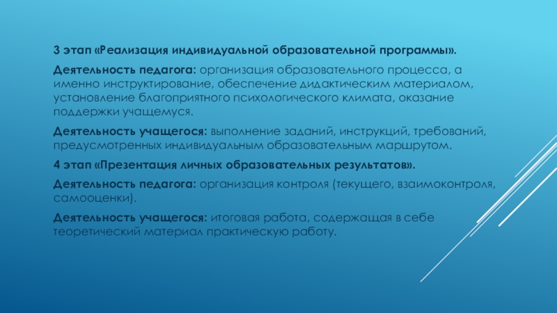 Слайд 173 этап «Реализация индивидуальной образовательной программы».