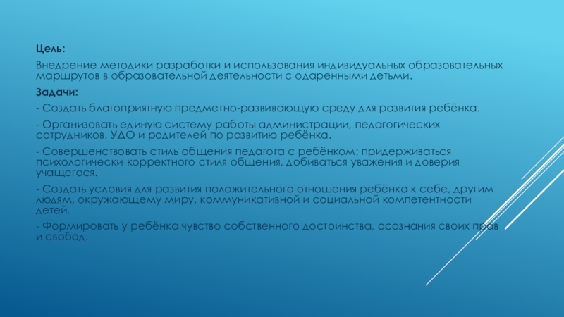 - Организовать единую систему работы администрации, педагогических сотрудников, УДО и родителей по развитию ребёнка.