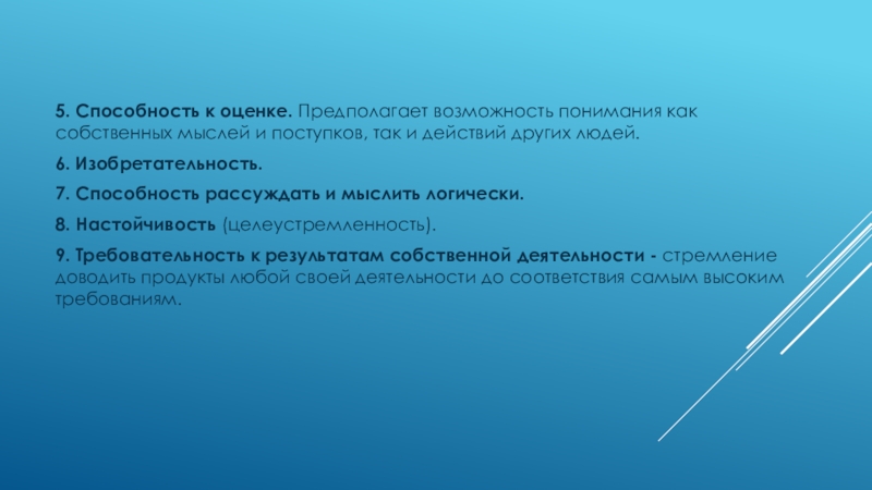 Слайд 115. Способность к оценке. Предполагает возможность понимания как собственных мыслей и