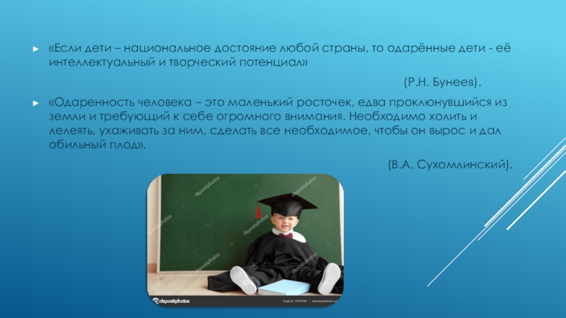 Слайд 2«Если дети – национальное достояние любой страны, то одарённые дети -