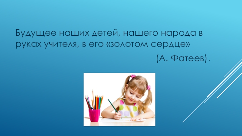 Слайд 25Будущее наших детей, нашего народа в руках учителя, в его «золотом