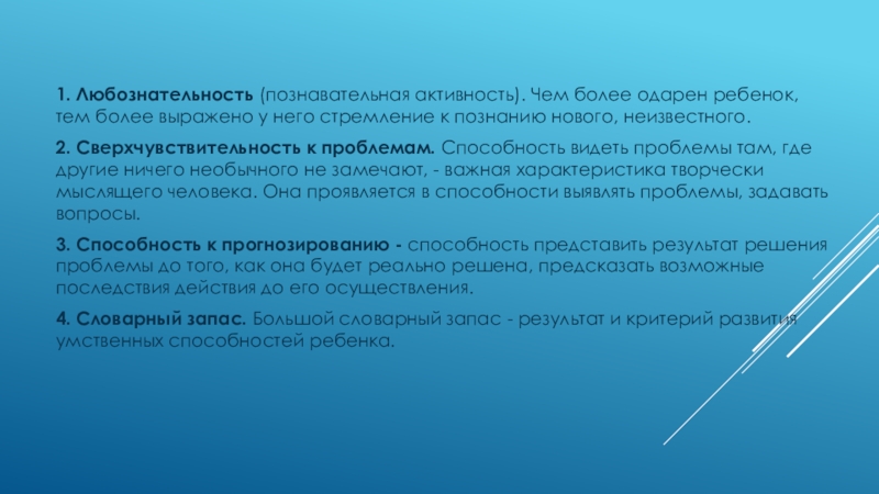 Слайд 101. Любознательность (познавательная активность). Чем более одарен ребенок, тем более выражено