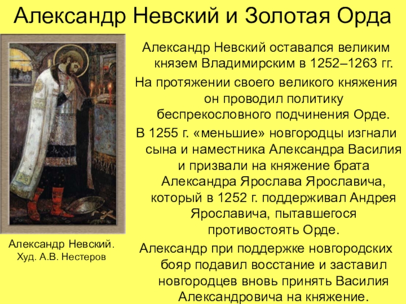 «Логика развития образа ведет нас к предположению, что в Орду Александр поехал не жаловаться на брата,