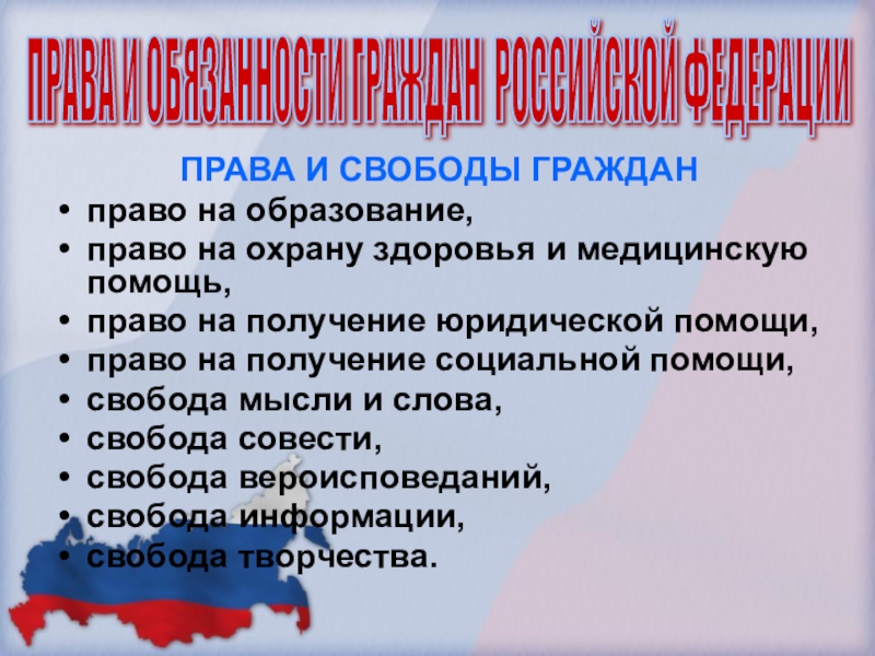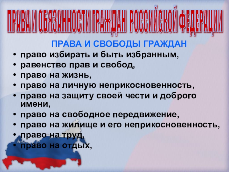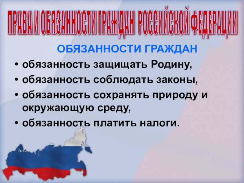 ПРАВА И ОБЯЗАННОСТИ ГРАЖДАН РОССИЙСКОЙ ФЕДЕРАЦИИ