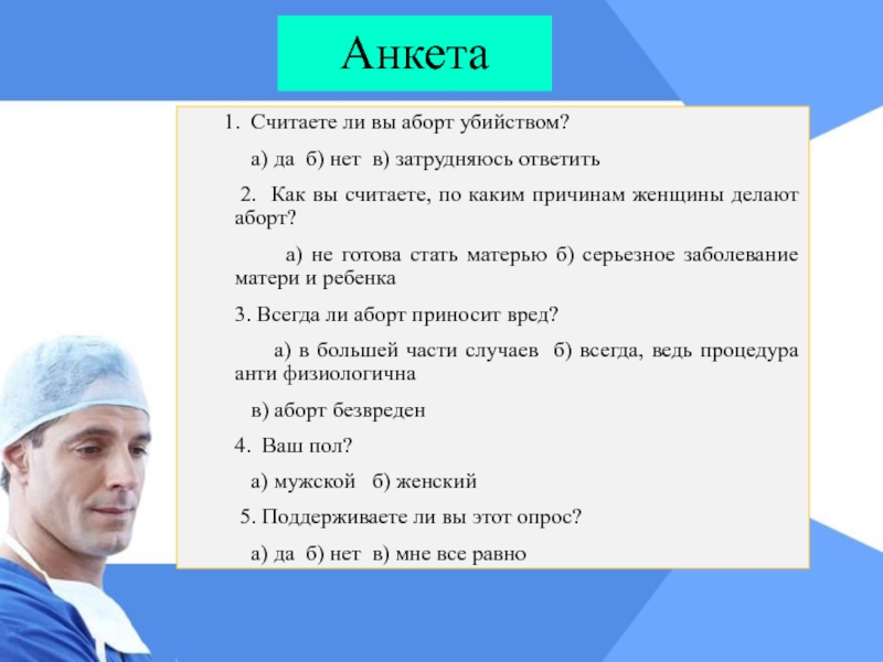 2. Изучить аборт как медицинскую проблему;