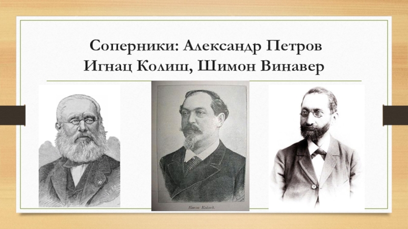 Слайд 8 Соперники: Александр Петров Игнац Колиш, Шимон Винавер