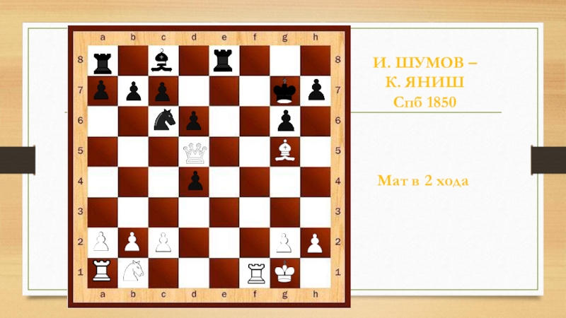 И. ШУМОВ – К. ЯНИШ Спб 1850Мат в 2 хода