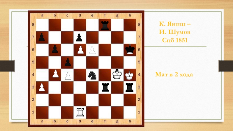 И. ШУМОВ – К. ЯНИШ Спб 1868Мат в 1 ход