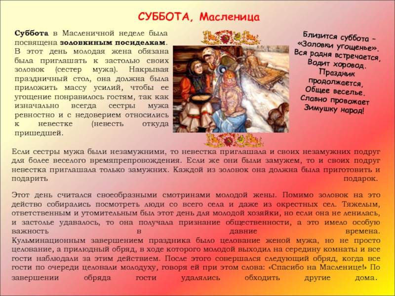 суббота — «золовкины посиделки»