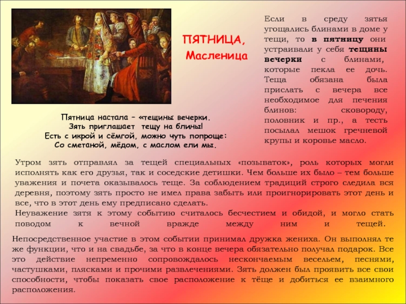 пятница — «тещины вечерки»