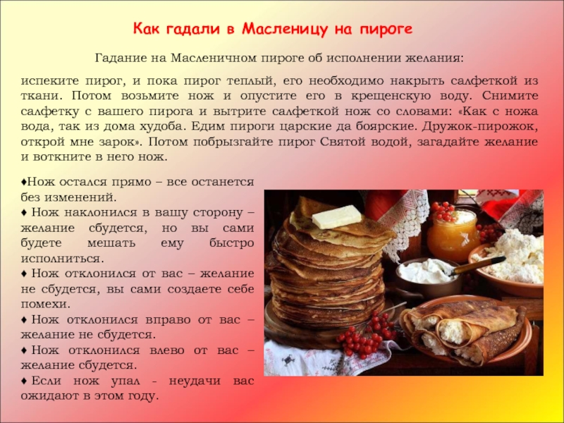 Гадание на Масленичном пироге об исполнении желания: