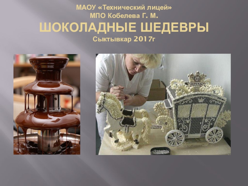 Слайд 1МАОУ «Технический лицей» МПО Кобелева Г. М. ШОКОЛАДНЫЕ ШЕДЕВРЫ Сыктывкар 2017г
